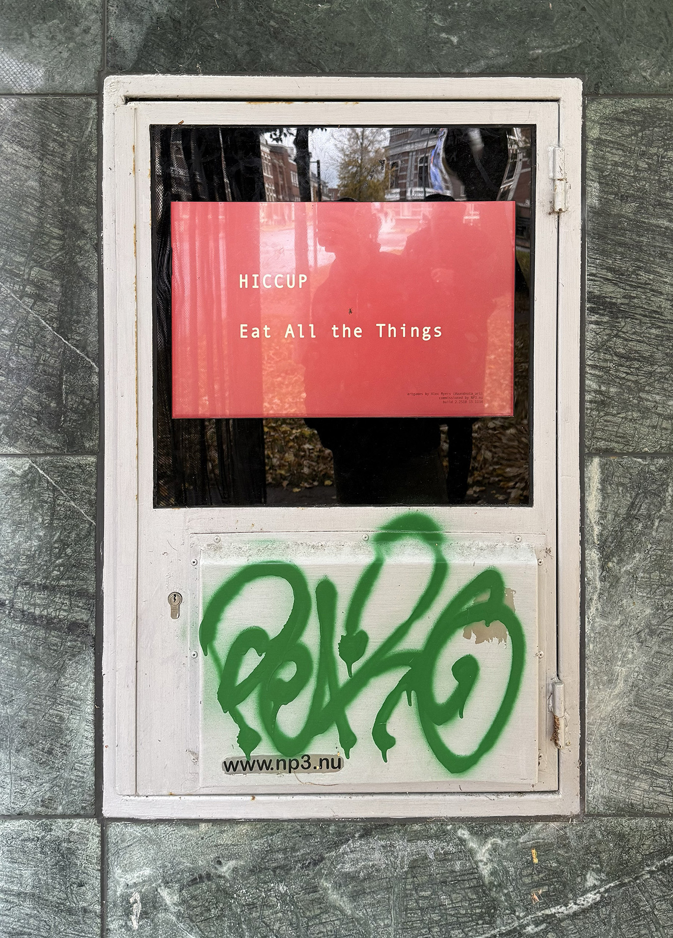 This project brings together two remastered art games—HICCUP and Eat All the Things—originally commissioned by the Dutch art center NP3 in 2014 for the Rem Koolhaas–designed VIDEOBUSSTOP in Groningen, The Netherlands. Conceived specifically for the urban public context of the interactive bus stop display, these works explore the expressive and poetic potential of game mechanics as artistic media. In 2025, both titles were revisited and updated for the grand reopening of the VIDEOBUSSTOP, offering contemporary audiences a renewed encounter with playful, embodied, and everyday experiences through digital form.